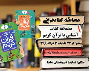 مسابقه کتاب خوانی با موضوع مجموعه کتاب ((آشنایی با قرآن کریم)) در دبیرستان صلحا برگزار می گردد.